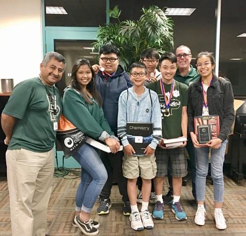 A team of 6 students from Buena Park High School made school history on March 15th winning a place in the top three teams (out of 24) at the Orange Coast College Math Meet. In addition, Buena Park High’s Justin Hsu came in first with a score of 317 points in the individual competition section.