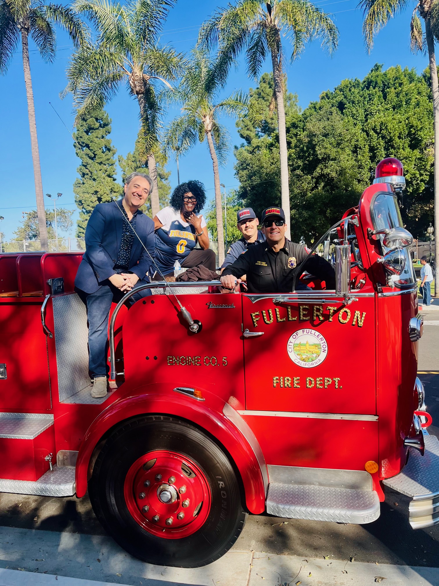 Participants in the parade represented a diverse array of fields, including sports, politics, the law, academia – every occupation under the sun. Notable participants were Parade Grand Marshall Ronald Rochon, who is president of Cal State University, Fullerton. Bobby McDonald is president of the Orange County Black Chamber of Commerce. Judge Karen Robinson is the first Black Woman to serve on the OC Superior Court. Christina Cooper is an actress best known for her work in the films Sugar Baby, Dear White People, and The Influencer. Also in attendance representing Fullerton were Dr. Vicki Calhoun, Board of Trustees for the Fullerton Joint Union High School District, City Councilmember Dr. Ahmad Zahra, Fire Department Chief Adam Loeser, Captain J. Wisniewski, and Sargent Luis Garcia.